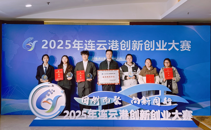 11月26日下午,2025年连云港创新创业大赛颁奖仪式在连云港金陵云台宾馆成功举办。本次比赛由连云港市科学技术局、中共连云港市委人才工作领导小组办公室主办,中共连云港市委宣传部等多家单位协办,连云港市科技创业服务中心等单位承办。在此项大赛中,我校学生斩获大学生专项赛一等奖1项、二等奖2项、三等奖1项,我校荣获“优秀组织单位”荣誉称号。