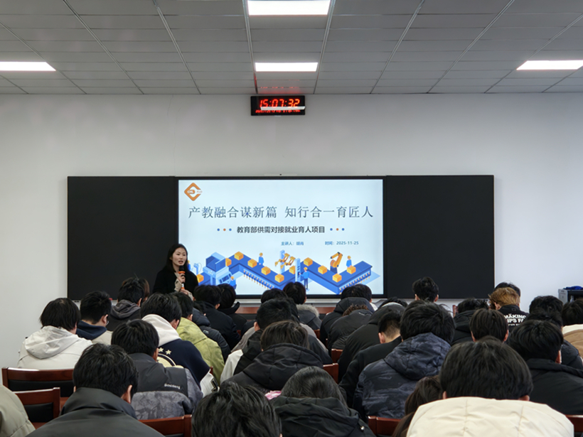教育部供需对接就业育人项目旨在通过校企合作,精准对接人才培养与用人需求,实现高质量就业与高效选才的双赢。我院与北京华航唯实机器人科技股份有限公司联合申报的供需对接就业育人项目成功入选教育部第四期立项名单。本次会议,双方就就业创业工作的难点进行了深入交流,企业方分享了协同育人的实践经验,并表达了深化合作的意愿。会上举行了合作院校授牌仪式,并面向工业机器人技术专业大三学生举办了专题讲座。